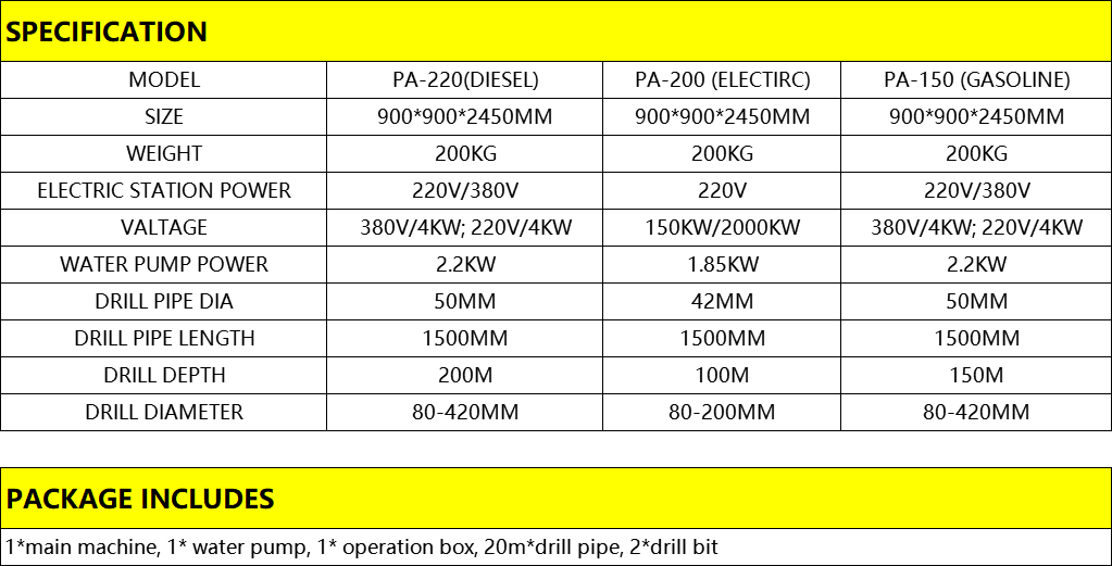 1.PANDA drilling machine occupies a small area ( 1square meters), a height of 2.5 meters stand, the job can be installed in less than ten minutes.can be used at indoor and outdoor site. 2.The well pipe is fully enclosed, shallow layer has no leakage, can ensure the health and safety of drinking water. 3.Research and Develop by ourself,it breaks difficult problem that easy to drill and hard to disassemble. 4.All the lifting, loading and unloading drill pipe is mechanized, time-saving, labor-saving and easy to operate. 5.Advantages : 5.1 One person operation, save labor cost. 5.2 With universal wheel,convenient to transport. 5.3 Economical,can be owned by common families. 5.4 Light weight, simple operation,very easy to install.